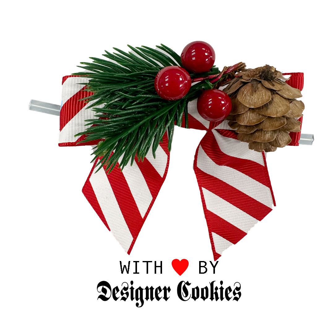 Pine Cone Candy Stripe Pretied Bow on a Wire