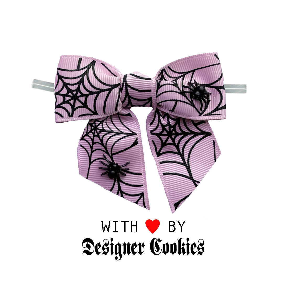 This bow is made from a wide grosgrain ribbon with a black printed spider web...