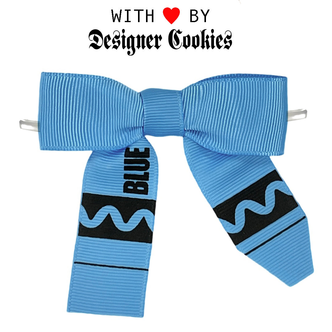 Blue Crayon Bow Pre-tied Bow on a Wire