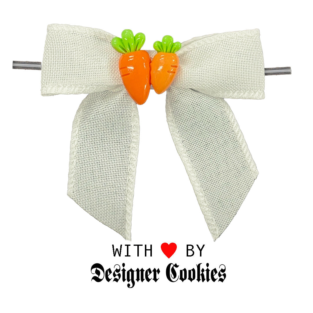 White Poly Linen Bow with Carrot Charm