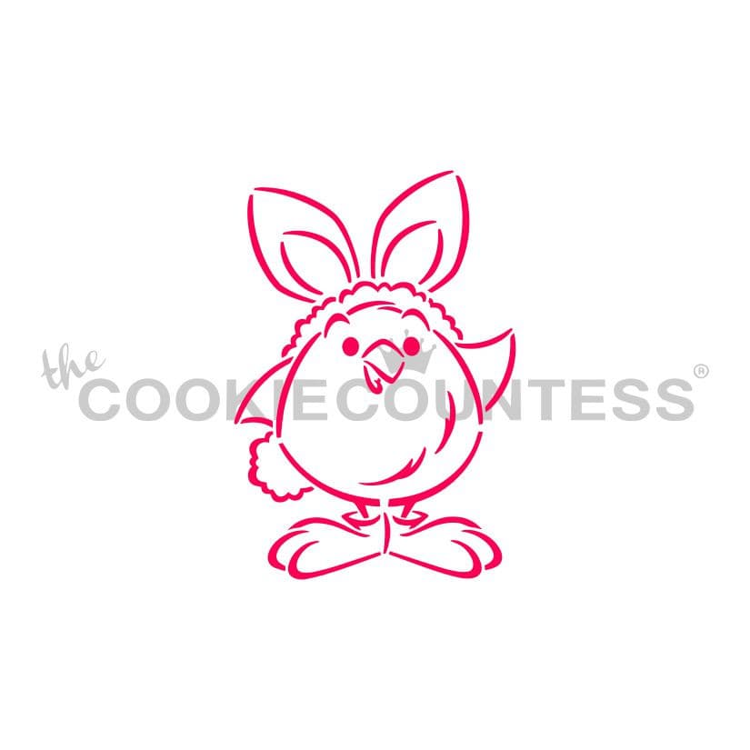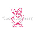 Fluffy Chick in Bunny Costume stencil. Design size is 2.06" x 3" Use as a Paint your Own stencil, or as it's own design! Overall stencil size is approximately 5.5" x 5.5". PINK sections in image are the open sections. Stencils are 5mil Food Grade plastic, washable and reusable.