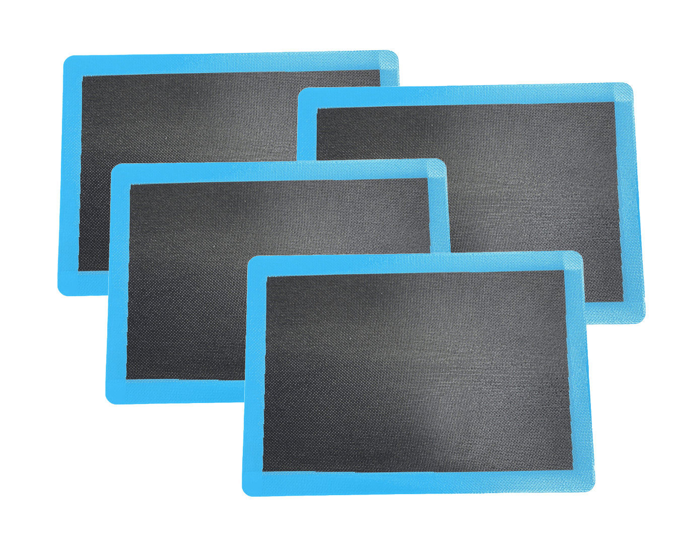 A half-sheet pan sized perforated baking mat with rounded corners.