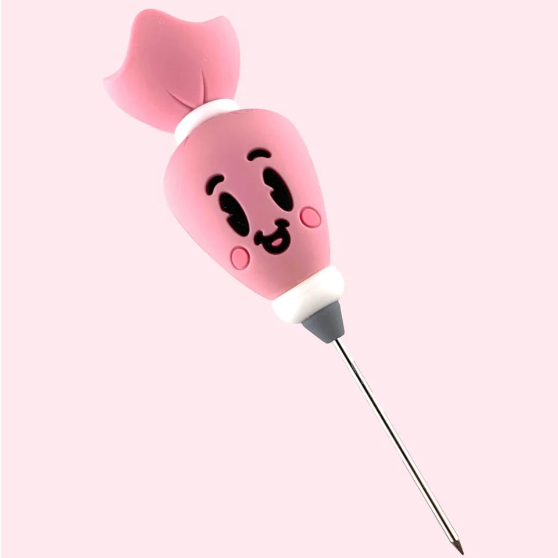Stainless steel needle with a silicone piping bag handle. (The silicone is 100% food safe, BPA free, and phthalate free.)