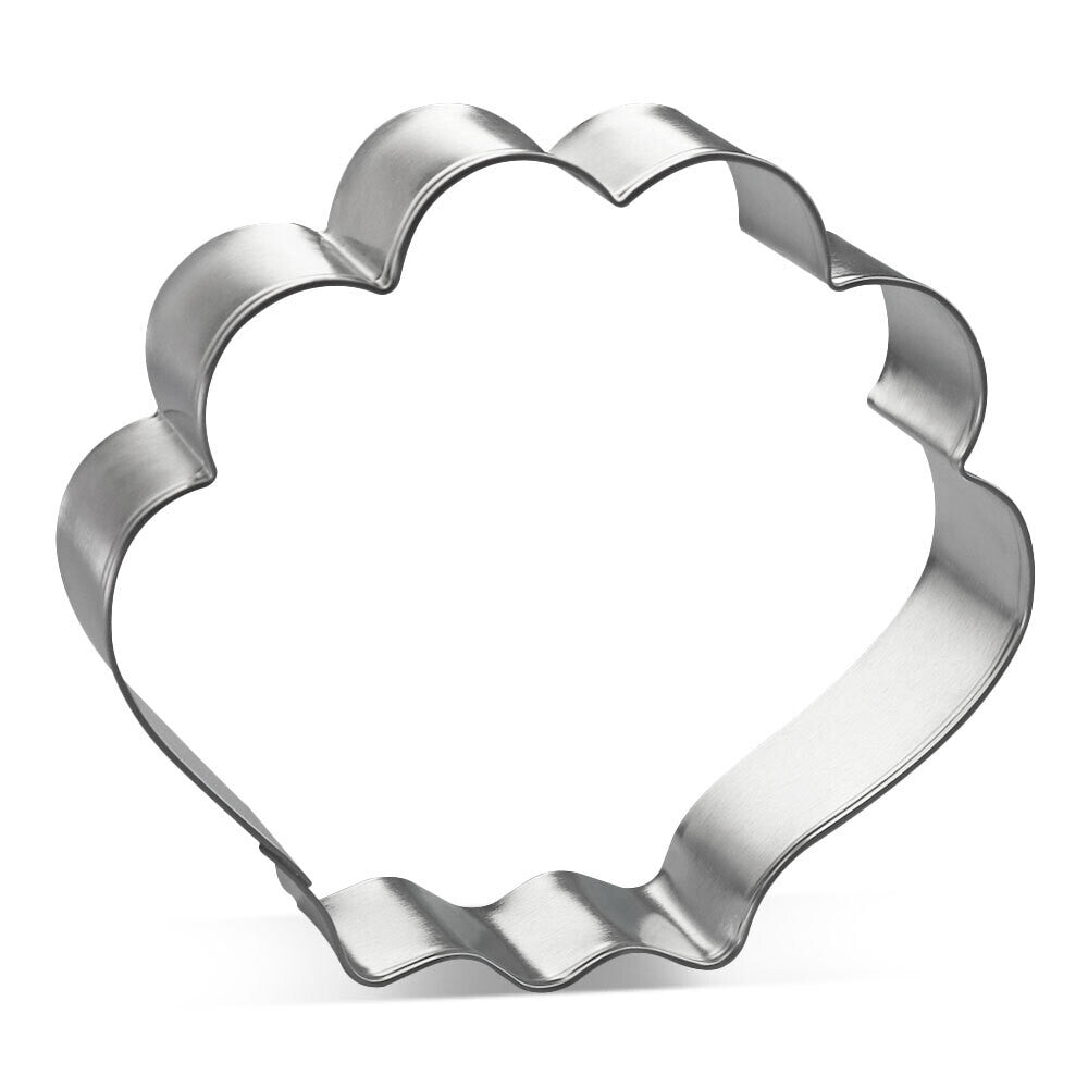 Seashell Cookie Cutter B1538, made of sturdy tin, Size: 3.25 in tall, 3.5 in wide, and depth 7/8 in. Made in the USA.