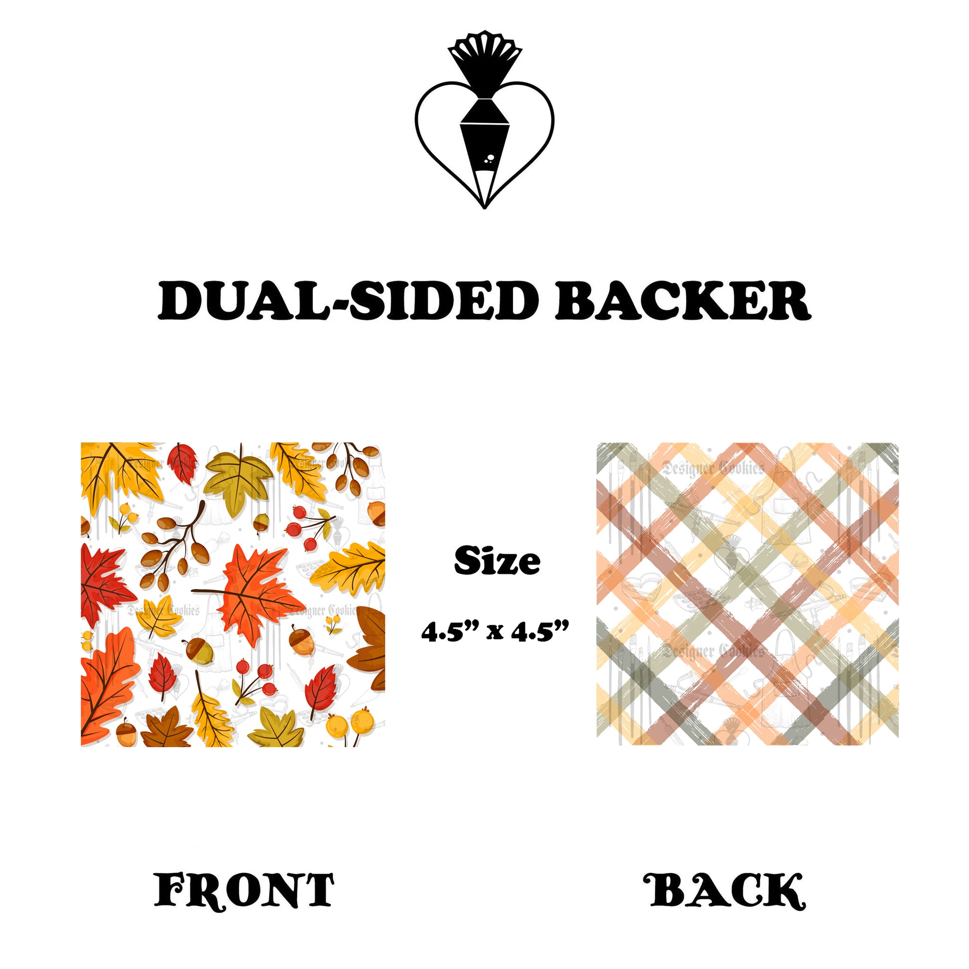 A double-sided printed box backer. These are not safe for direct contact with food, so cookies must be bagged in a food safe cello bag before putting into contact with the backer.